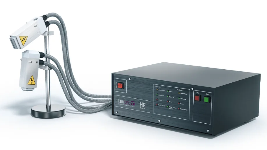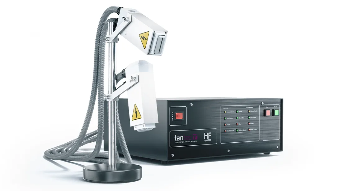 O novo sistema de tratamento de plasma atmosférico SpinTEC da Tantec é construído em torno do conceito de uma descarga de plasma DC de alta tensão no ar atmosférico. A versatilidade desta unidade permite o uso em células robóticas totalmente integradas, como uma unidade autônoma ou praticamente qualquer linha de produção.